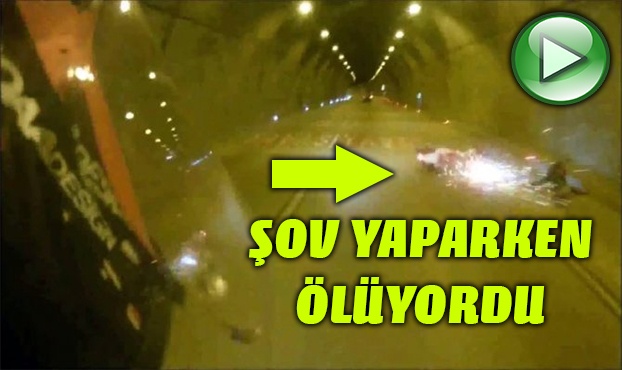 Kağıthane Tüneli’nde arkadaşlarıyla sözde şov yapmak isteyen motosikletli maganda faciaya davetiye çıkardı. Tünel içerisinde tek teker giderken takla atarak yerde sürüklenen motosikletlinin o anları arkadaşının kask kamerasına yansıdı.