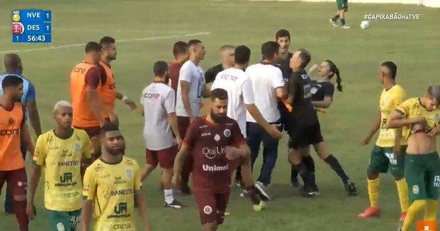 Brezilya'da oynanan Nova Venecia - Desportiva ES maçında skandal bir olay yaşandı. Kameralar, Rafael Soriano'nun hakem Arthur Gomes Rabelo ile olan tartışmasına müdahale eden kadın çizgi hakemi Marcielly Netto'ya saldırdığı şok edici anı kaydetti.Teknik direktör Soriano, hakemin korner pozisyonunda devreyi bitirmesi üzerine tartışma çıkarırken araya giren kadın hakem Netto'ya kafa attı.
