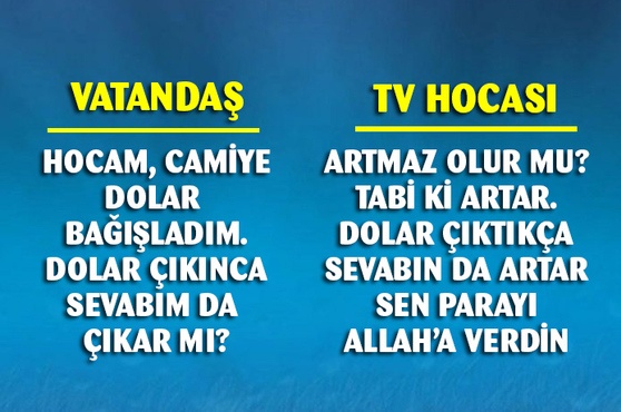 Televizyon hocasından, "Dolar artarsa sevap da artar" cevabı