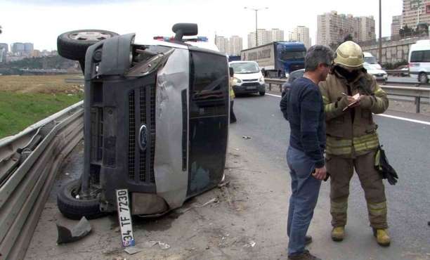 Avcılar Tem otoyolunda para yüklü zırhlı bir araç, şoförünün bir anlık gözünün kararmasıyla öndeki ticari minibüse çarptıktan sonra devrilerek yan yattı. Olayda bir kişi yaralandı.Avcılar Tem otoyolunda para yüklü zırhlı bir araç, şoförünün bir anlık gözünün kararmasıyla öndeki ticari minibüse çarptıktan sonra devrilerek yan yattı. Olayda bir kişi yaralandı.