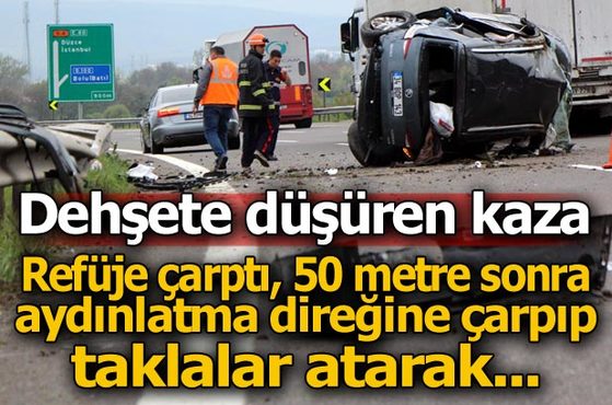 BOLUda, TEM Otoyolu'nda orta refüjdeki aydınlatma direğine çarptıktan sonra taklalar atan otomobildeki Mehmet Dede (54) öldü, 4 kişi yaralandı.