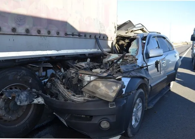 Aksaray'da kan donduran bir kaza yaşandı... Sol arka lastiği patlayan cip kontrolden çıkıp TIR’a arkadan çarptı. 1 kişi öldü, 2 kişi de yaralandı...Kahreden kaza, saat 06.30 sıralarında Aksaray- Ankara kara yolunun 46'ncı kilometresinde meydana geldi. Kocaeli'nden Aksaray'a arkadaşlarıyla birlikte bir inşaata çalışmaya gelen Ercan Kaya (33) yönetimindeki 34 FDD 468 plakalı cip, Ahmet Ünlü'nün (30) kullandığı 51 ABH 290 plakalı makine parçası yüklü TIR'a arkadan çarptı.