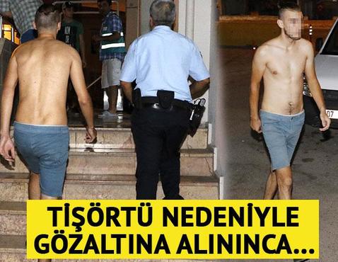 Antalya'da üniversite öğrencisi 24 yaşındaki B.Ö., 'Hero' yazılı tişört giydiği gerekçesiyle gözaltına alındı. Polis merkezinde üzerindeki tişörtü çıkarılan B.Ö., 3 saat boyunca yarı çıplak ifade verdi.
