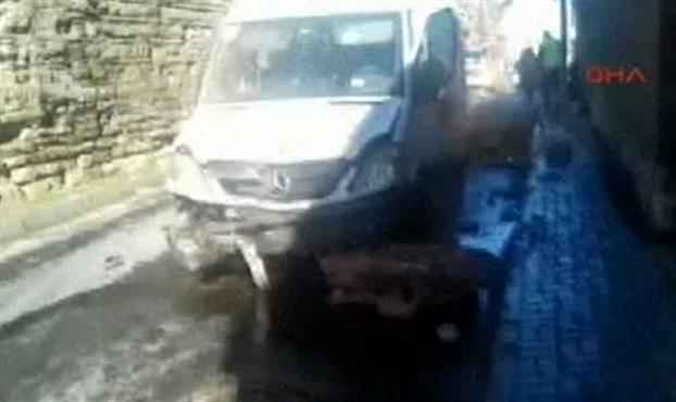 İstanbul Topkapı'da Sulukule Caddesi'nden geçen öğrenci servisinin önüne tarihi surlardan büyük bir parça düştü.