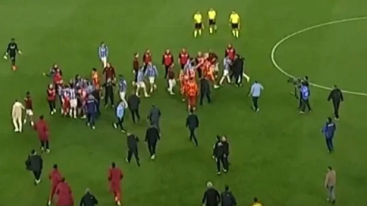 Trendyol Süper Lig'in 28. haftasında Trabzonspor'un Galatasaray'ı ağırladığı müsabakanın bitiş düdüğünün ardından saha bir anda karıştı.