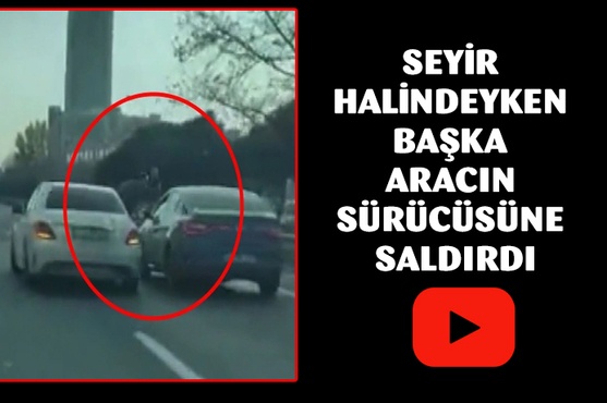 Basın Ekspres yolunda otomobilin içinde bulunan bir şahıs, seyir halinde olan başka bir otomobil sürücüsüne camdan sarkarak saldırdı. Yaşanan ilginç anları başka bir sürücü cep telefonu kamerasıyla görüntüledi.