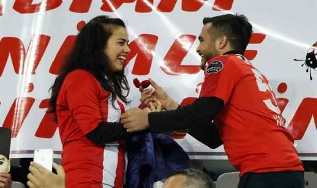 Tribünde evlenme teklifi