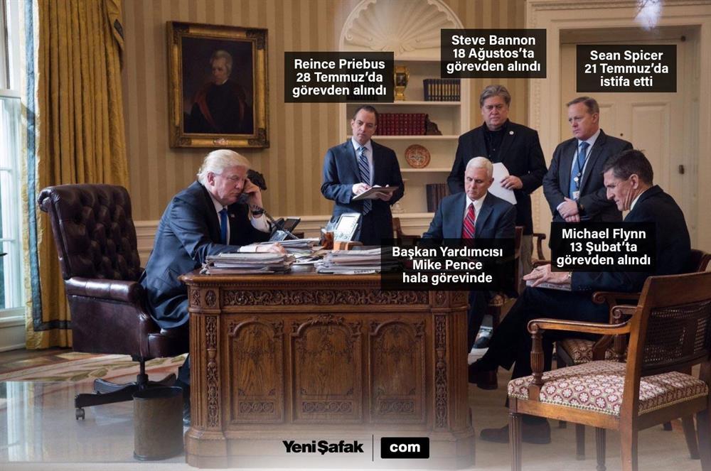 Bannon'ın da görevden alınması ile birlikte fotoğraftan geriye Trump ve yardımcısı Pence kaldı. Son ayrılıklarla birlikte Beyaz Saray'da büyük bir dağınıklık gözlemlenirken, Trump'ın danışmanı Kushner ve Ulusal Güvenlik Danışmanı McMaster'ın etkisinin arttığı belirtiliyor.