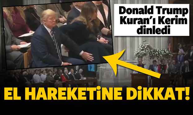 Trump'ın Kuran-ı Kerim okunduğu esnada duruşu ve eşi Melania Trump'a hareketleri dikkatlerden kaçmadı.