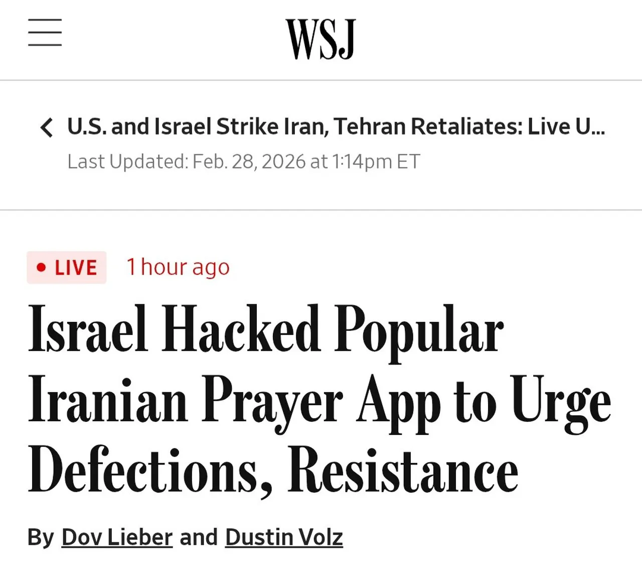 Wall Street Journal'ın haberine göre, İsrailli hackerlar bu sabah İran'da yaygın olarak kullanılan bir dua uygulamasına sızarak milyonlarca kullanıcının telefonuna erişim sağladı.