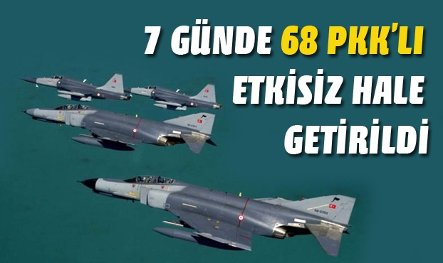 TÜRK Silahlı Kuvvetleri tarafından son bir haftadır sürdürülen operasyonlarda toplam 68 PKK'lı terörist etkisiz hale getirildi.