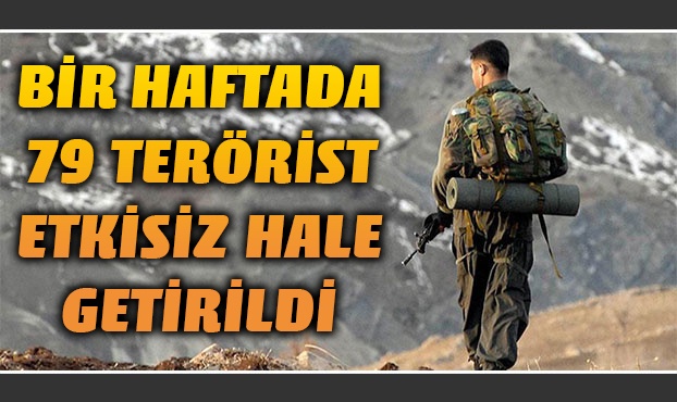 Türk Silahlı Kuvvetleri (TSK), yurt içinde bölücü terör örgütüne karşı bir hafta içinde gerçekleştirilen operasyonlarda biri sözde lider kadrosunda olmak üzere 79 teröristin etkisiz hale getirildiğini açıkladı.