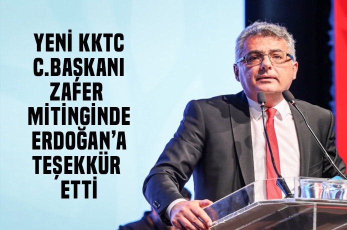 KKTC'nin yeni Cumhurbaşkanı'ndan zafer mitingi! Erdoğan'a teşekkür etti