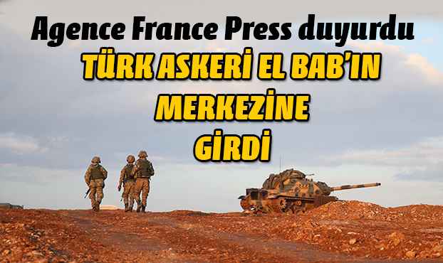 Terör örgütü DEAŞ kontrolündeki El Bab ilçesinden bir son dakika haberi geldi. AFP, Türk askerleri ve Suriyeli muhaliflerin kasaba merkezine girdiğini iddia etti.AFP'nin kaynak olarak kullandığı Londra merkezli Suriye İnsan Hakları Gözlemevi'nden yapılan açıklamada, "Fırat Kalkanı Harekâtı'na katılan Türk askeri ve müttefik muhalifler, kasabaya batıdan girdi ve bazı alanları kontrol altına aldı" denildi. Açıklamada, kasabada DEAŞ ile yoğun çatışmaların sürdüğü belirtildi.