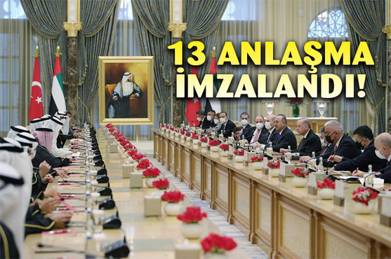 Cumhurbaşkanı Recep Tayyip Erdoğan’ın Birleşik Arap Emirlikleri (BAE) ziyareti kapsamında Türkiye-BAE arasında çeşitli alanlarda 13 anlaşma imzalandı.