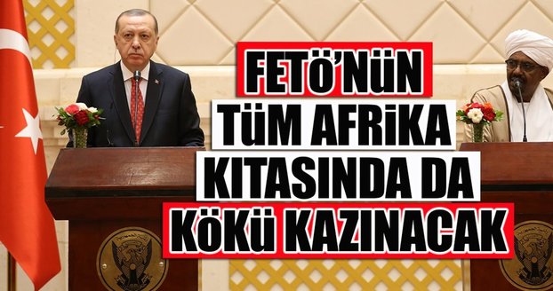Resmi temaslarda bulunmak üzere gittiği Sudan'da konuşan Cumhurbaşkanı Erdoğan, "Sudan gibi diğer dost ülkeler de FETÖ'ye karşı gerekli tedbirleri almaya başlamıştır. FETÖ'nün tüm Afrika kıtasında kökünün kazınacağına inanıyorum" dedi.