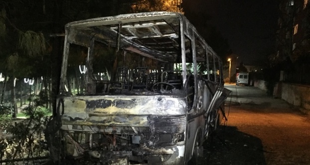 Ümraniye’de park halindeki otobüs alev alev yandı.