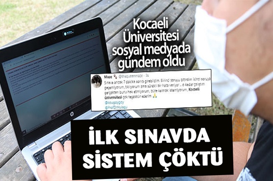 Korona virüs nedeni ile online eğitim veren Kocaeli Üniversitesi'nde sınavlar online ortamda gerçekleştiriliyor. Açıklanan takvime göre bugün başlayan sınavlar için öğrenciler, üniversitenin online eğitim sistemine girdi. Öğrencilerin oluşturduğu yoğunluk nedeni ile internet sitesi çöktü. Sınava giremeyen öğrenciler ise sosyal medyada ilginç paylaşımlar yaparak duruma tepki gösterdi. Twitter'dan konu ile ilgili 26 binden fazla paylaşım yapılmasının ardından üniversitenin çöken sınav sistemi sosyal medyanın gündemine oturdu.