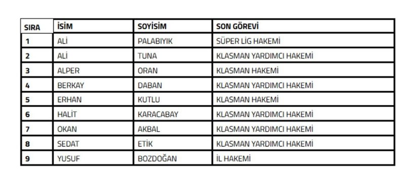 Türkiye Futbol Federasyonu, son 5 yılda TFF bünyesinde görev yaparken futbolda bahis oynayan hakemlerin ismini açıkladı..