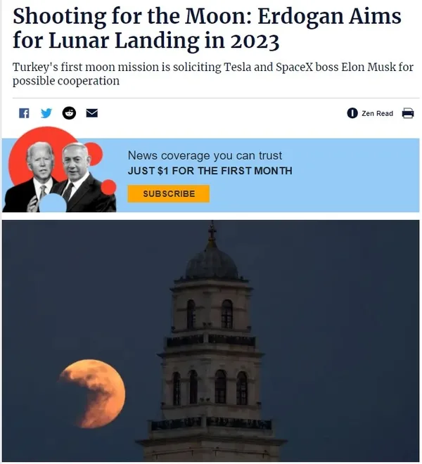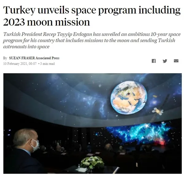 ABD'li gazete, Başkan Erdoğan'ın duyurduğu uzay programını, Türkiye'nin 2023 yılında gerçekleştireceği ilk Ay görevi haberiyle gündeme taşıdı.