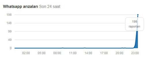 Son 24 saatteki arıza grafiğine göre WhatsApp'taki sorun 23:00'ten itibaren başladı;