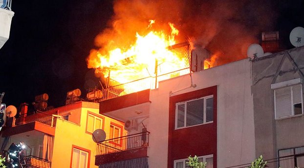 Yangın, saat 21.30 sıralarında Antalya’nın Muratpaşa ilçesi Konuksever Mahallesi 792 Sokak’ta bulunan Fatih Apartmanı’nın çatı katında yer alan binada meydana geldi.
