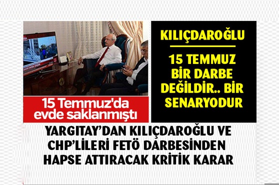 Kemal Kılıçdaroğlu ağzından düşürmüyordu! Yargıtay'dan flaş 15 Temmuz kararı... 'Senaryo' demek suç sayılacak..Yargıtay 15 Temmuz darbe girişimini 'senaryo' olarak nitelendirenlerle ilgili önemli bir karara imza attı. Mahkeme verdiği kararda 15 Temmuz'a senaryo demenin "Suçu övme" suçunu oluşturduğunu ifade etti.