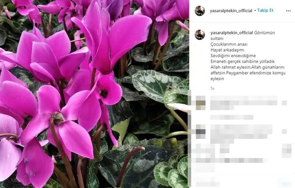 Alptekin, "Gönlümün sultanı, çocuklarımın anası, hayat arkadaşımı, sevdiğimi en sevdiğime, gerçek sahibine yolladık. Allah rahmet eylesin. Allah günahlarını affetsin, Peygamber efendimize komşu eylesin" mesajını yayınladı.