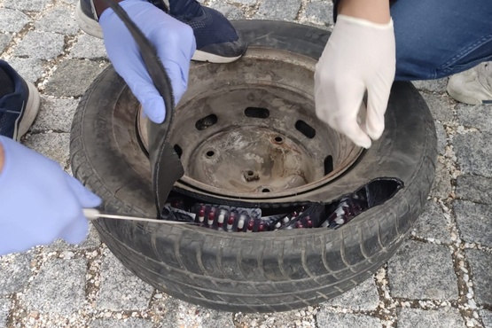 Yedek lastiğe saklanmış bin 386 hap ele geçirildi