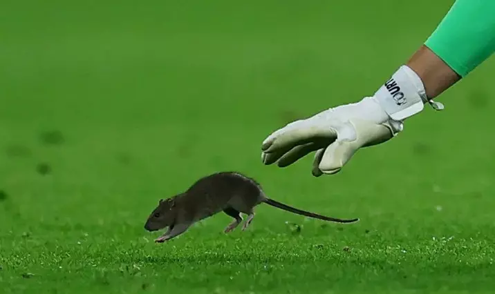 Dünya Kupası Elemeleri'nde Galler ile Belçika arasında oynanan milli maçta sahaya giren fare mücadeleye damga vurdu.
