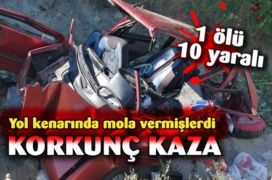 Yol kenarında mola veren aileye otomobil çarptı: 1 ölü, 10 yaralı