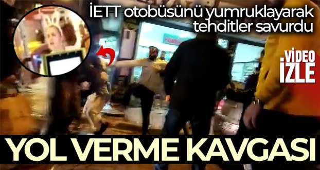 Yol verme kavgası: İETT otobüsünü yumruklayarak tehditler savurdu