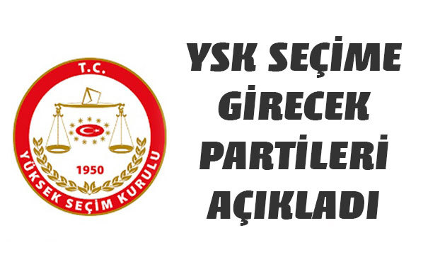 Yüksek Seçim Kurulu (YSK), 24 Haziran'da yapılacak cumhurbaşkanı ve milletvekilliği genel seçimine, Adalet ve Kalkınma Partisi (AK Parti) , Bağımsız Türkiye Partisi (BTP), Büyük Birlik Partisi (BBP), Cumhuriyet Halk Partisi (CHP), Demokrat Parti (DP), Halkların Demokratik Partisi (HDP), İYİ Parti, Milliyetçi Hareket Partisi (MHP), Saadet Partisi ve Vatan Partisi'nin girebileceğine karar verdi.
