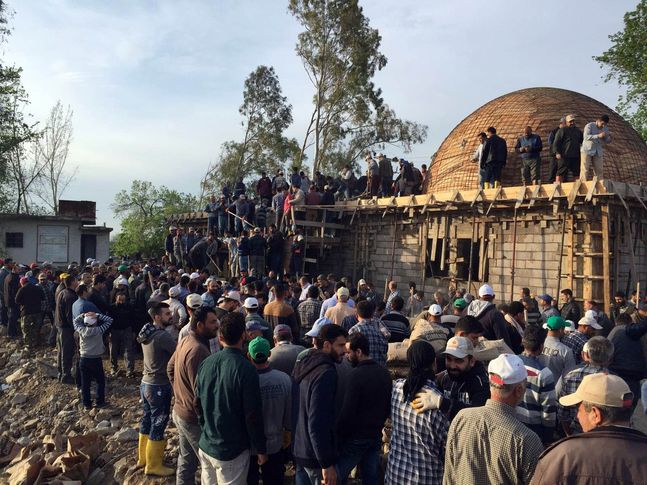Yüzlerce mahalleli bir araya gelerek yıkılmaya yüz tutan türbeyi yeniledi