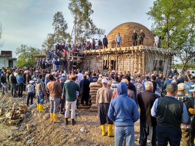 Adana'da yüzlerce mahalleli bir araya gelerek yıkılmaya yüz tutan türbeyi yeniledi