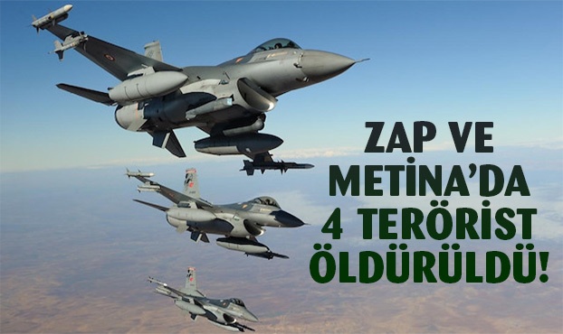 Irak'ın kuzeyindeki Zap ve Metina bölgelerine düzenlenen hava harekatlarında 4 bölücü terörist etkisiz hale getirildi.