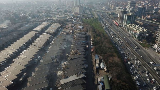 Zeytinburnu'nda yıkımın devam ettiği Nakliyeciler Sitesi havadan görüntülendi.
