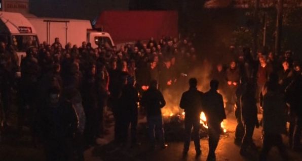 İzinsiz gösteri yapan grup, 7 blokta 254 iş yeri bulunan ve bini aşkın kişinin çalıştığı sitenin girişini TIR, kamyonet ve dorselerle kapatarak bazı noktalarda lastik yaktı.
