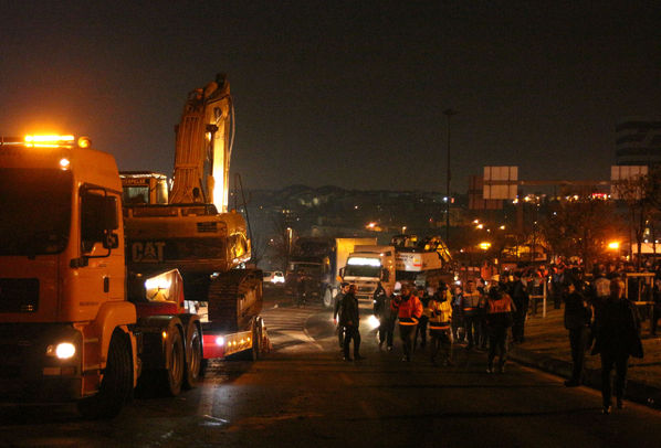 Zeytinburnu'nda, Nakliyeciler Sitesi'nin yıkılacağı iddiasıyla site girişini TIR, kamyonet ve dorselerle kapatıp eylem yapan gruba polis müdahale etti