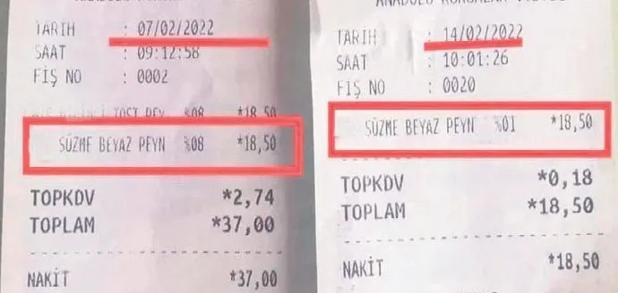 Gıda fiyatlarını düşürmek için KDV yüzde 8'den 1'e çekilirken, fırsatçılar yine harekete geçti. Bazı marka ve marketler, önce temel gıda ürünlerinde fiyatları yükseltti, ardından da 7 puanlık indirimi yansıttı.İndirim yerine zamla karşılaşan vatandaşlar ise isyan etti. KDV indirimi öncesi yapılan zamları fişleri ve belgeleriyle sosyal medyadan paylaşarak fırsatçıları afişe etti:
